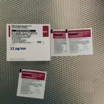 Haal de juiste hoeveelheid pleister(s) uit de omverpakking leg deze op een tafel. Fotografeer alleen de te geven pleister(s) in verpakking en originele omverpakking (doosje) mét zichtbare barcode of afleveretiket van de apotheek.