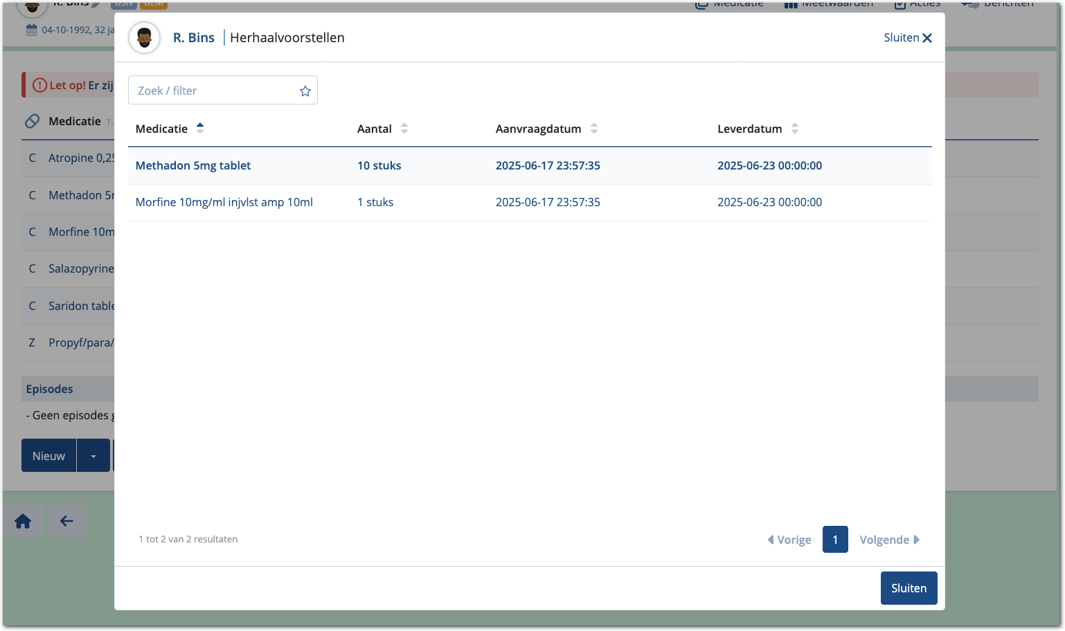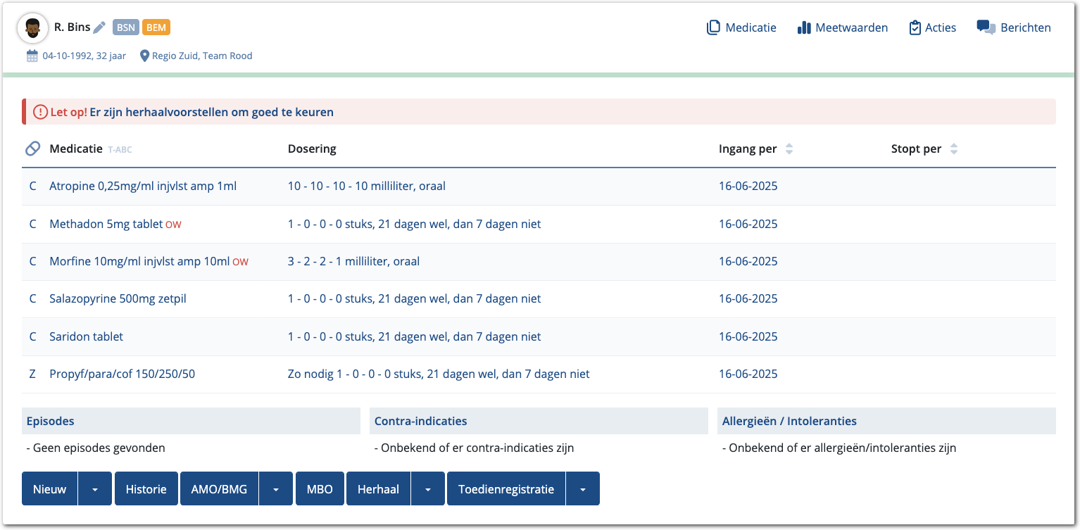 Heeft de zorg de bestelling geplaatst, dan worden de aanvragen van opiaten als Herhaalvoorstellen aangeboden bij de voorschrijvers.