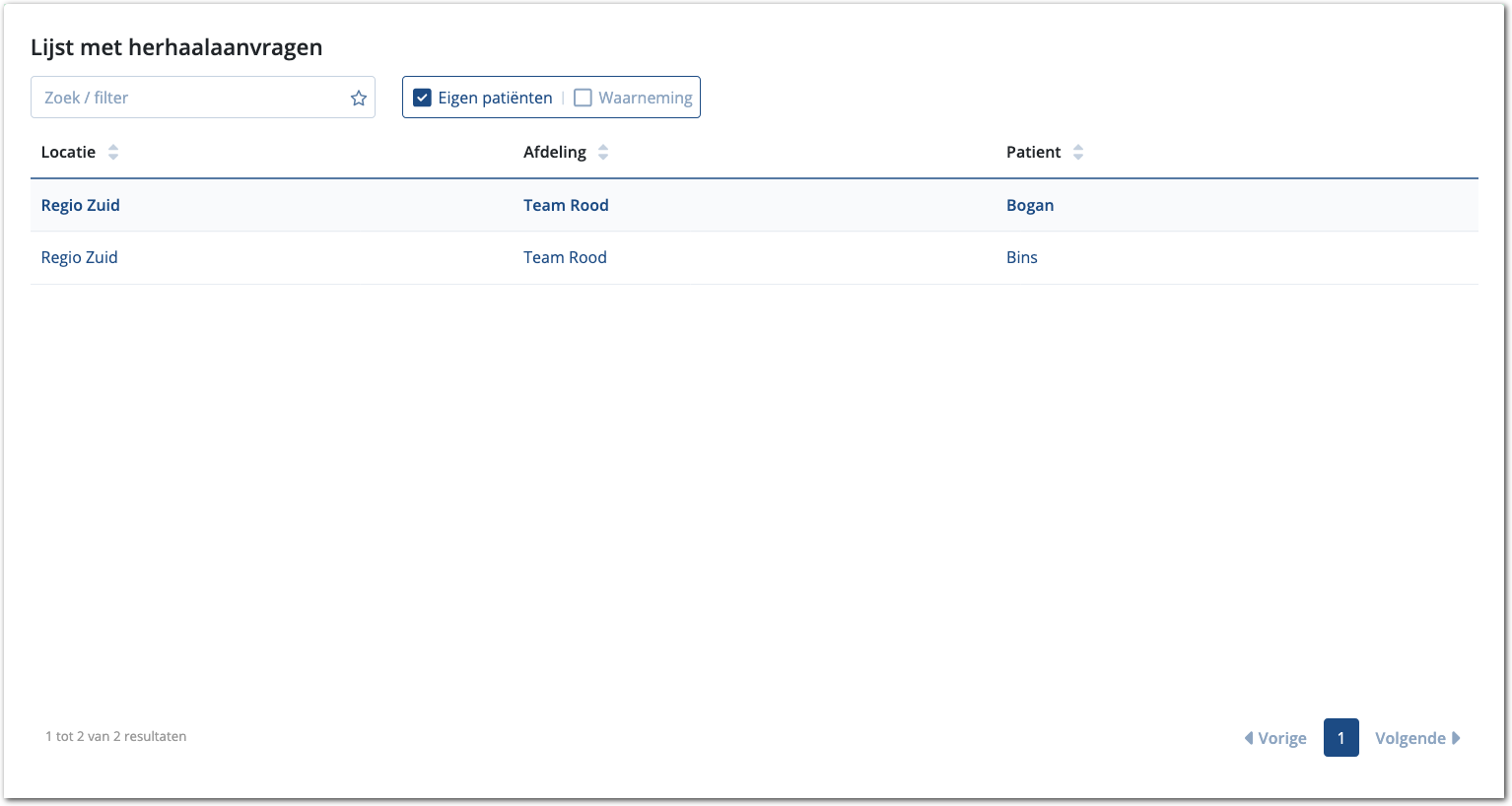 U kunt ook een lijst van aanvragen voor cliënten waarvoor u waarneemt openen. Vink in dat geval de filter Waarneming aan.