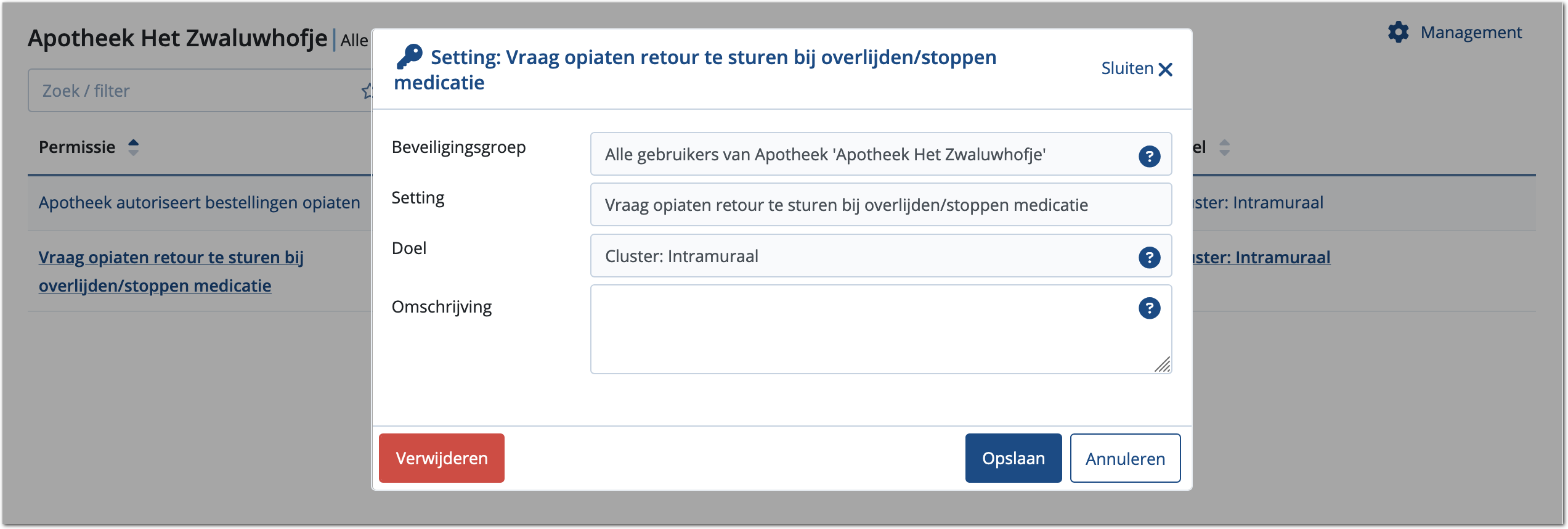 Vraag opiaten retour te sturen bij overlijden / stoppen medicatie
