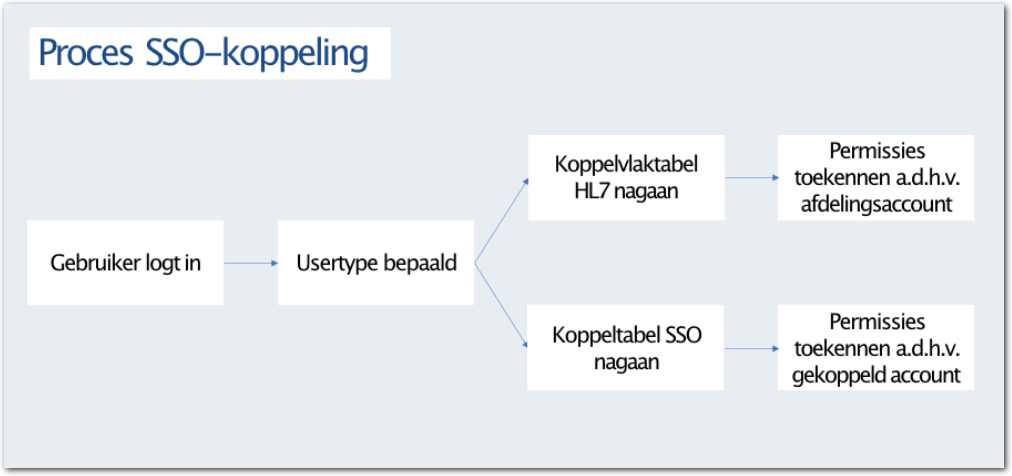 aan de hand van het gekoppelde account in de 'Koppeltabel single sign-on' welke permissies er moeten