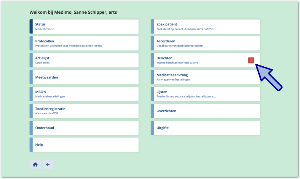 In het hoofdmenu wordt de knop 'Berichten' getoond. Zijn er nieuwe berichten voor uw eigen cliënten, dan wordt in deze knop een rode badge weergeven.