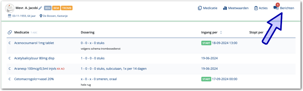 Ook wordt in een rode badge het aantal actieve berichten van de cliënt weergegeven. Hierdoor is ook voor de persoon die waarneemt direct zichtbaar of er actieve berichten zijn.