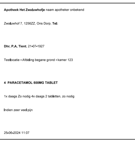 Hiermee worden op het etiket ook de gegevens van de apotheek geprint. Medimo gebruikt hiervoor de gegevens van de apotheek entiteit.