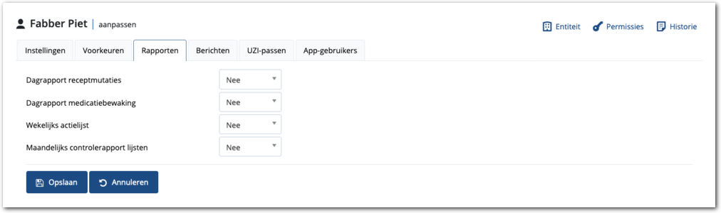 Voorwaarde voor het sturen van rapporten is dat er veilig gemaild kan worden naar het opgegeven e-mailadres bij de gebruiker. In het tabblad '