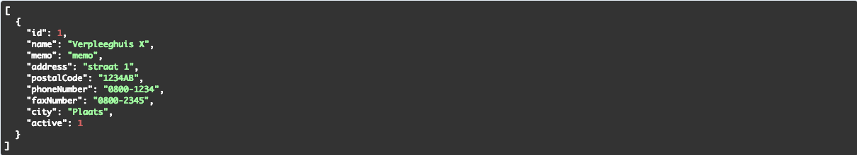 De volgende stap is het ontvangen van de gewenste data. Enkel resources waarvan de betreffende organisatie beheerder van is kan worden opgevraagd. Deze wordt aangeboden in JSON. Alle voorbeelden vindt u op onze API help. Onderstaand is een voorbeeld van de resource 'location':