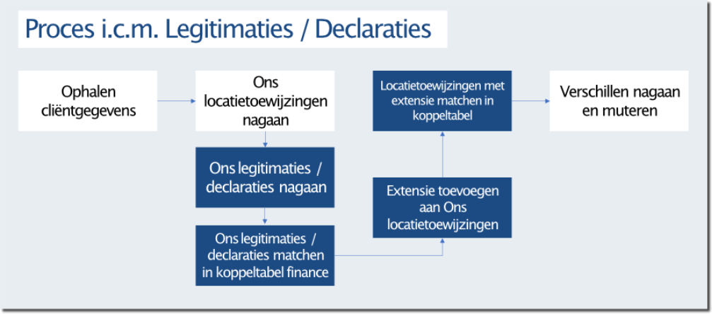 - Ons legitimaties / declaraties matchen in koppeltabel finance