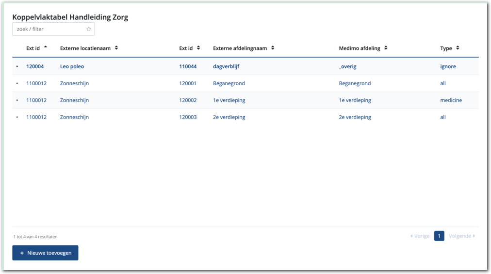 Medimo gebruikt dit 'nieuwe' ID om mee te zoeken in de 'Koppelvlaktabel webservices'. Is