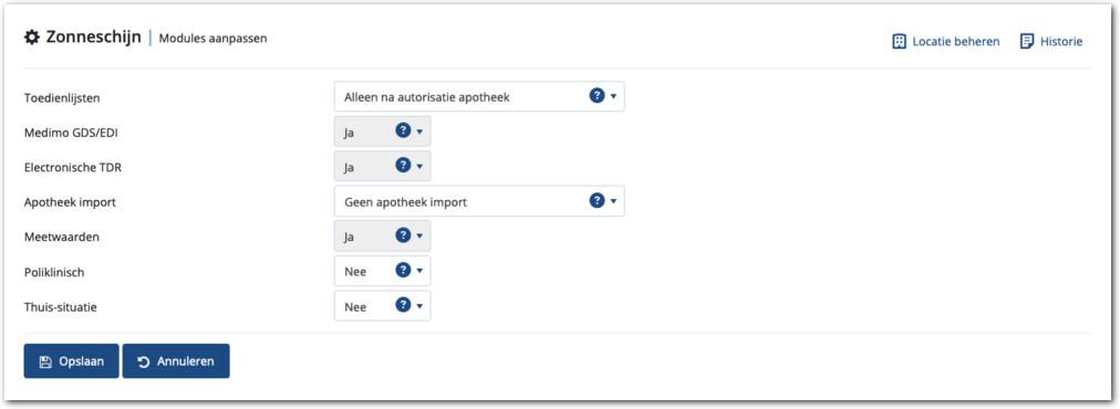 Om Medimo te laten aansluiten op de werkafspraken dienen per locatie de juiste modules te worden geactiveerd. De geactiveerde modules bepalen welke functionaliteit beschikbaar is en welke handelingen daardoor worden uitgevoerd in Medimo. Ook kunnen er kosten zijn verbonden aan het activeren van een module.