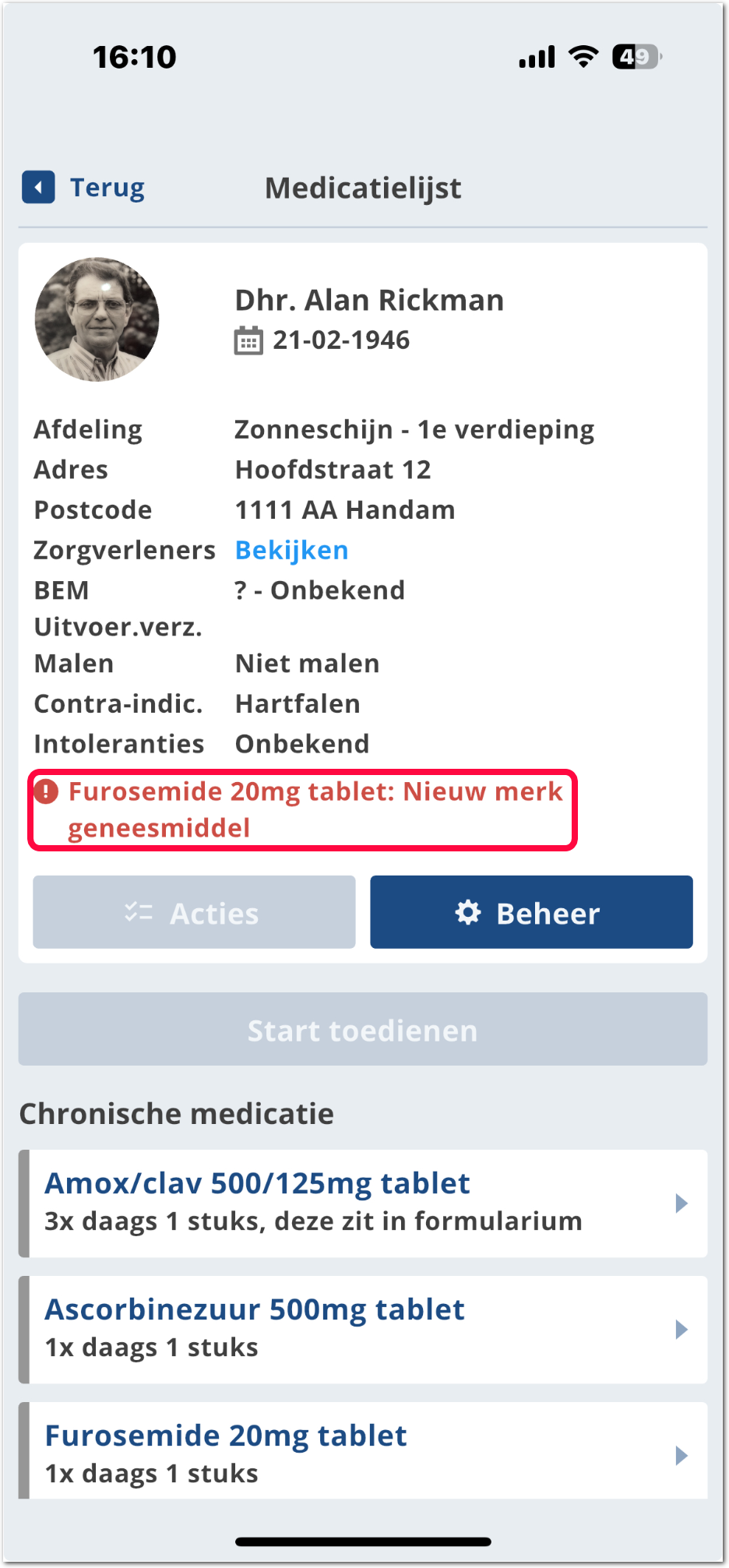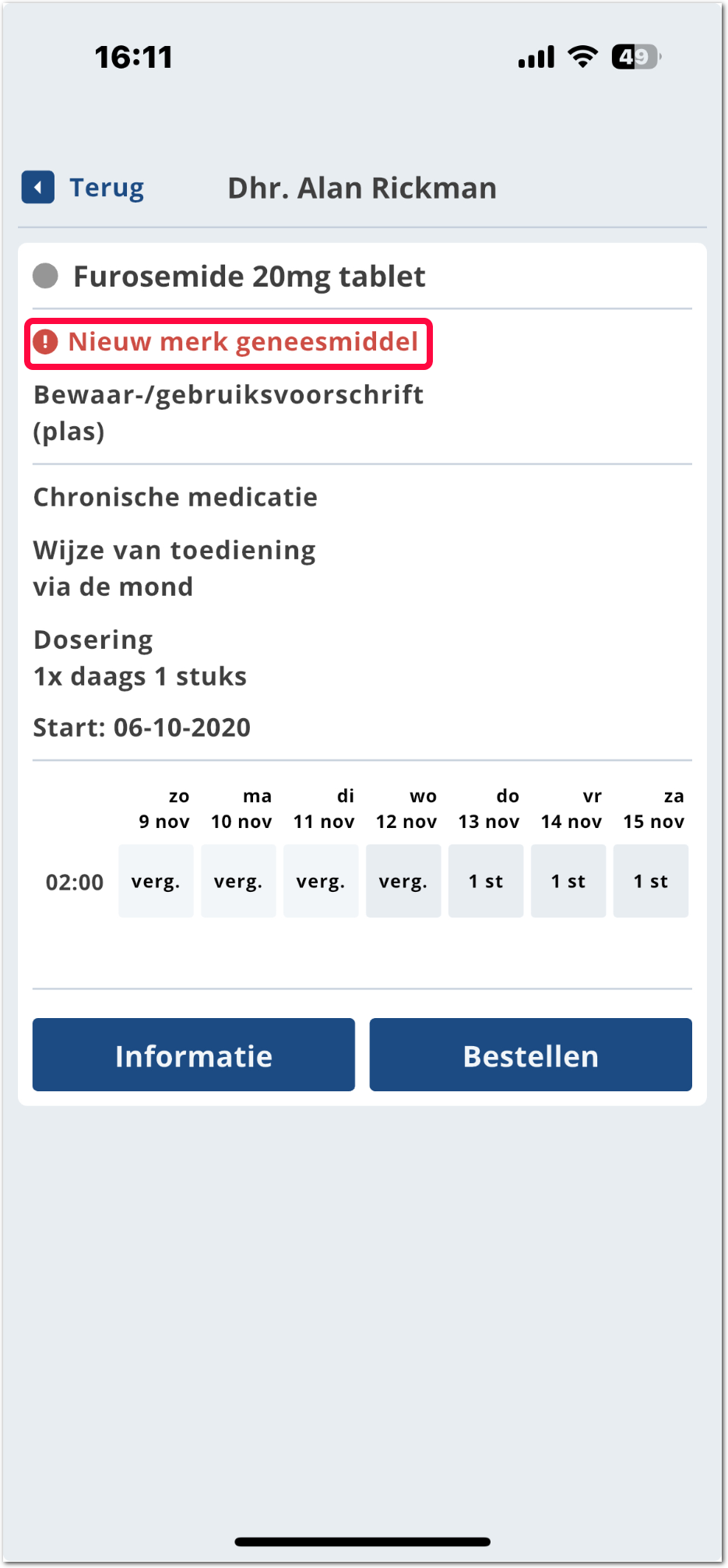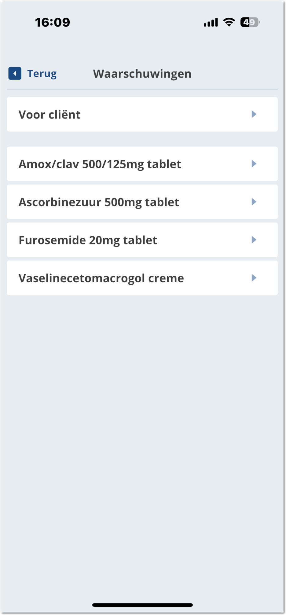 Na het opslaan zijn de waarschuwingen toegevoegd en zichtbaar op de medicatielijst.