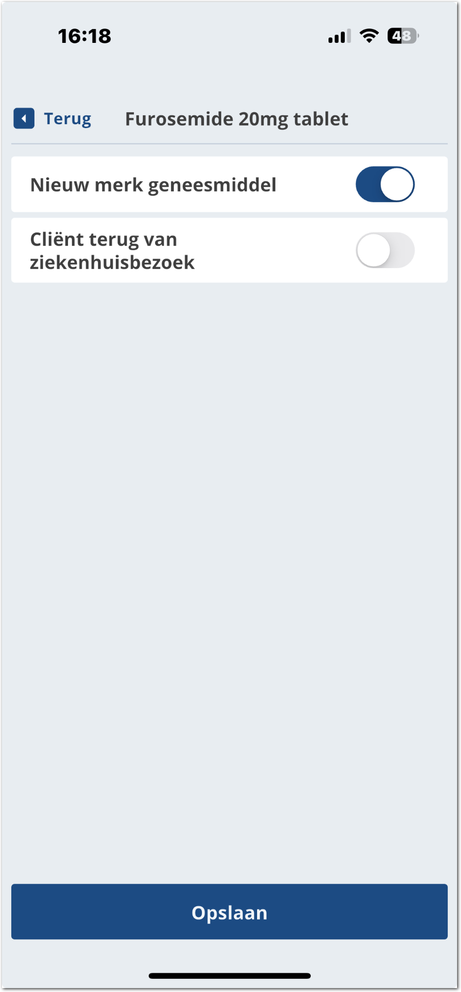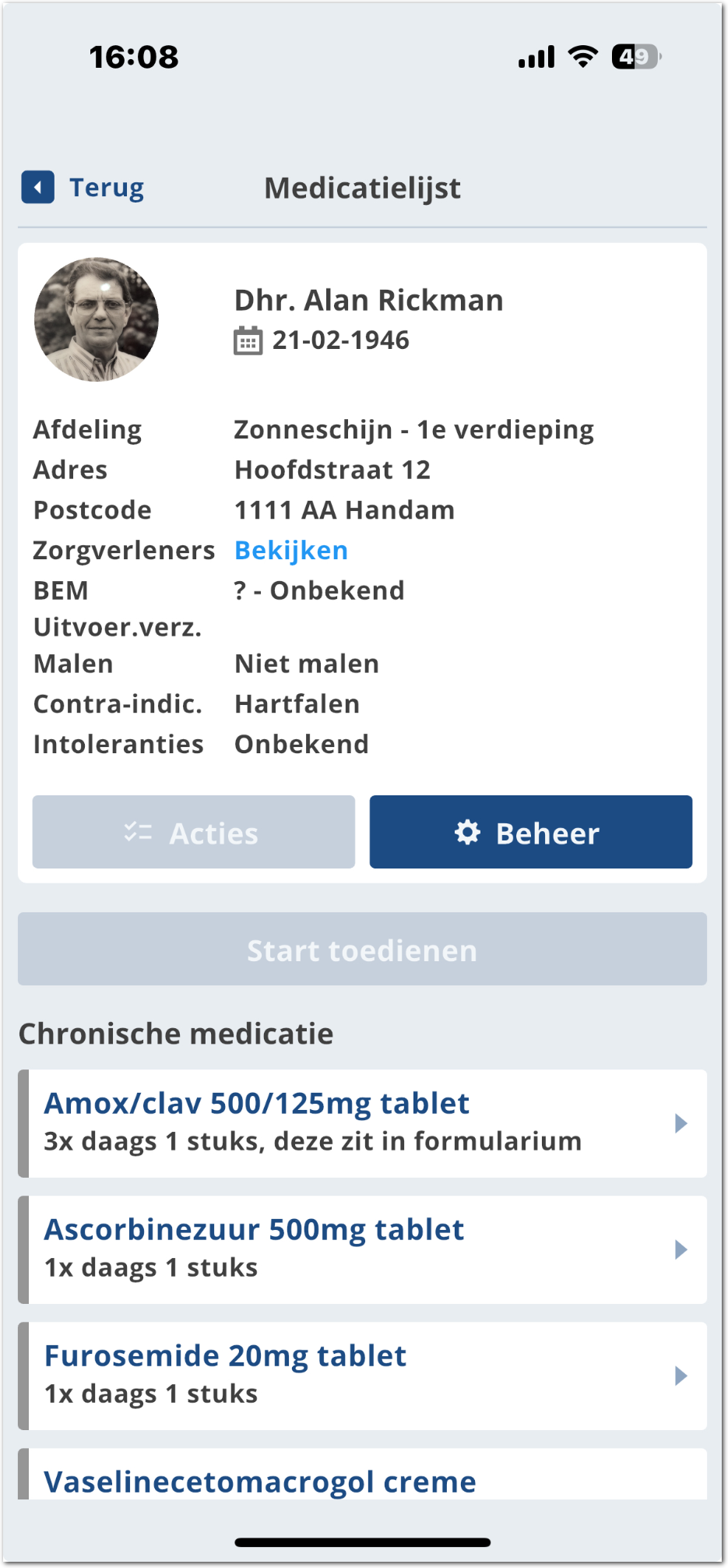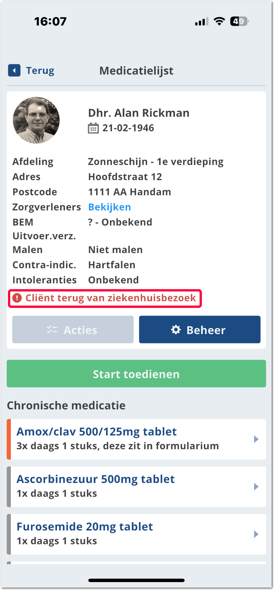 Na het opslaan zijn de waarschuwingen toegevoegd en zichtbaar op de medicatielijst.