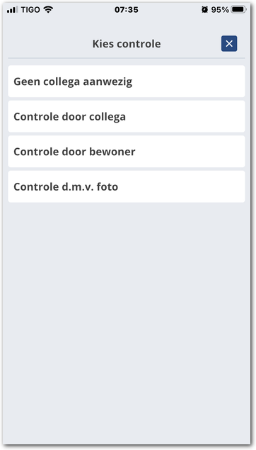 - Via een controlefoto - Deze methode kunt u gebruiken wanneer er géén collega in de buurt is. Deze collega kan met de controlefoto de controle op afstand uitvoeren.