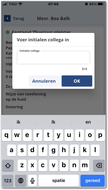 U voert een vrijwillige dubbele controle uit met de optie controleparaaf uit de 'Alternatieve' toedieningen. In de onderstaande GIF wordt een vrijwillige dubbele controle gedemonstreerd.