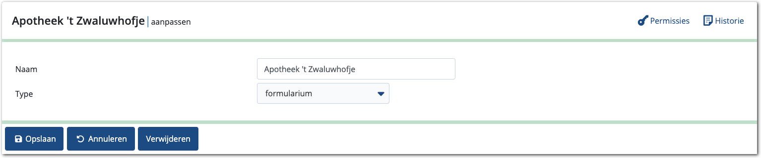 De apotheek kan samen met de zorgorganisatie het Formularium configureren om de standaardgeneesmiddelen, doseringen, omzettingen, blokkades, en dergelijke in te stellen. Wanneer een geneesmiddel tijdelijk niet leverbaar is, kan men die opnemen in de ...