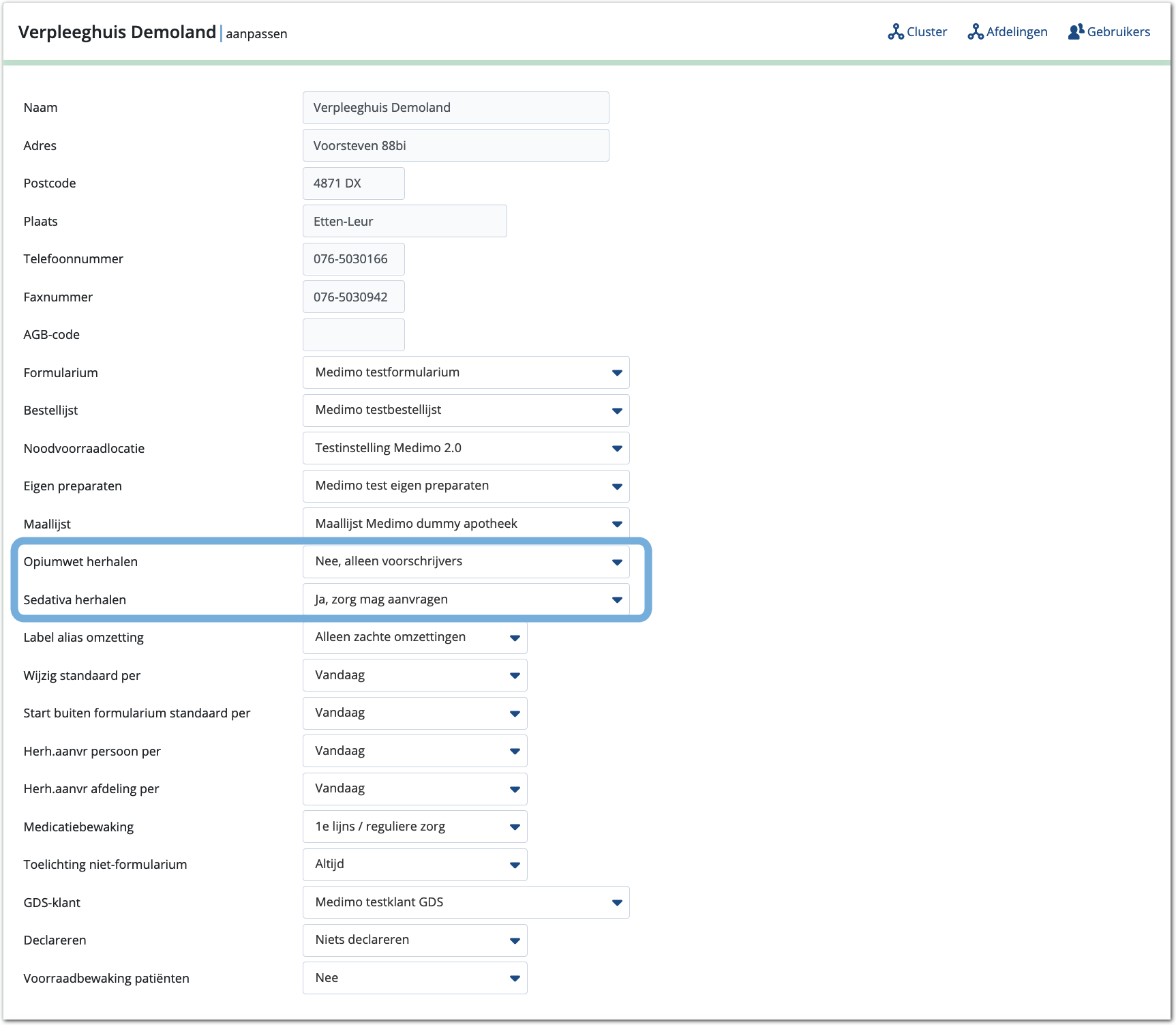- U stelt per locatie in welke type gebruikers opiumwet/sedativa kunnen bestellen