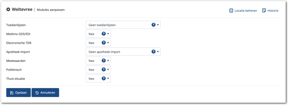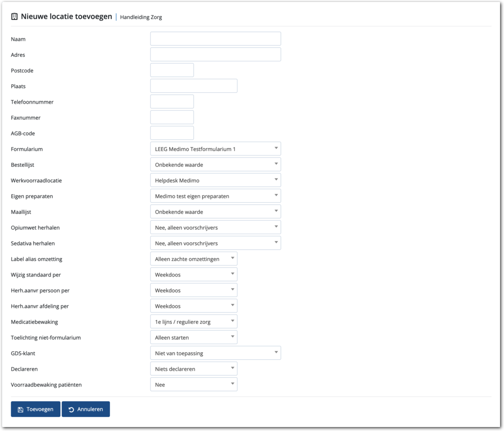 Hiermee activeert u de modules een toont Medimo een formulier om de volgende locatie aan te maken.