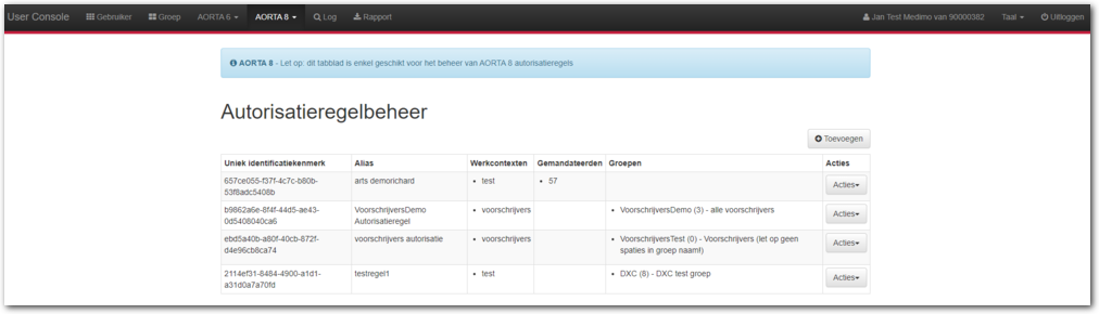 De User Console toont de 'Autorisatieregelbeheer' pagina. Onderstaande schermafbeelding is hier een voorbeeld van.