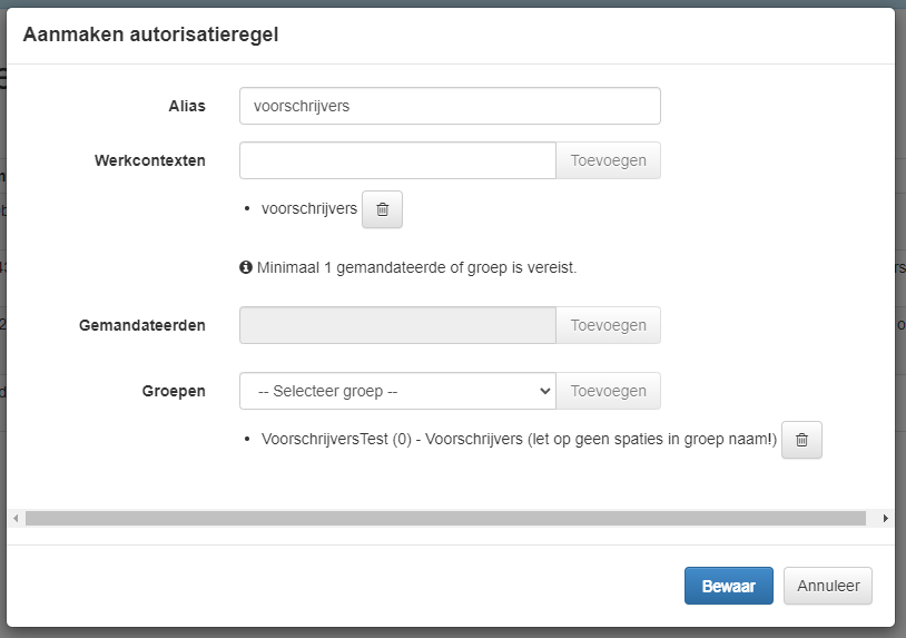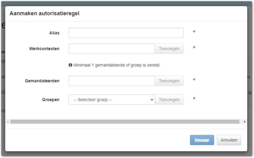 Voordat er een mandaat token kan worden gemaakt, dient u een autorisatieregel aan te maken. Volg daarvoor onderstaande instructies.