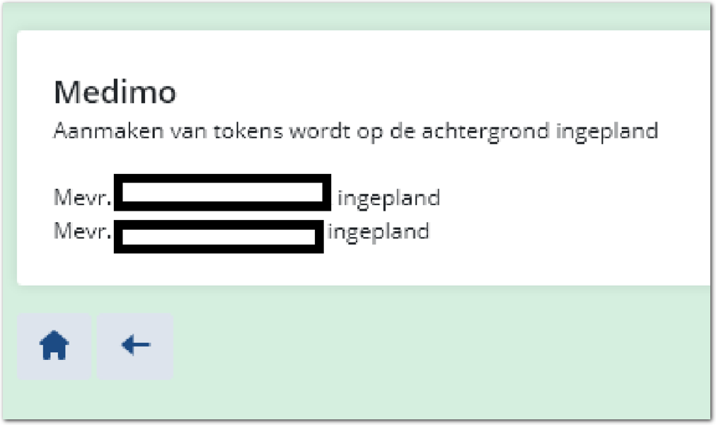 Hiermee plant u de cliënten in en worden de inschrijftokens op de achtergrond aangemaakt. Medimo toont een lijst van cliënten die zijn ingepland voor het aanmaken van inschrijftokens. Onderstaande afbeelding is daarvan een voorbeeld.