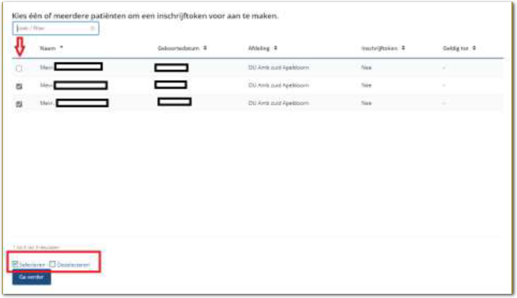 - Selecteer de cliënten waarvoor u een inschrijftoken wilt aanmaken