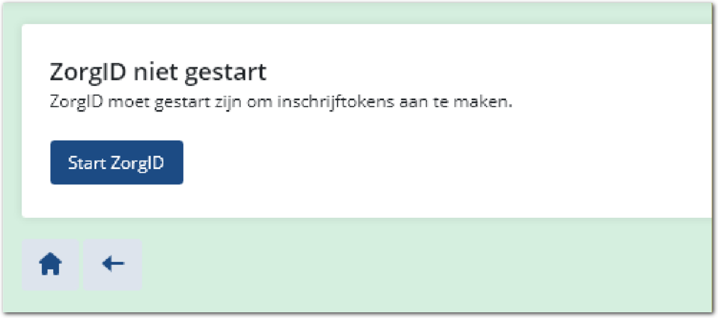 Let op! Voor het aanmaken van inschrijftokens moet u zijn ingelogd met ZorgID. Bent u dit niet en opent u bovenstaand overzicht, dan toont Medimo onderstaande melding.Met de knop 'Start ZorgID' kunt u alsnog inloggen met ZorgID. Bent u wel met ZorgID ingelogd, dan toont Medimo een lijst van afdelingen waarvoor u inschrijftokens mag aanmaken. Voor het kunnen aanmaken van inschrijftokens moet u in het bezit zijn van de volgende permissies: