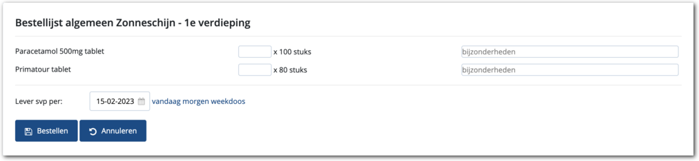 Medicatie aanvraag - Bestellijst algemeen