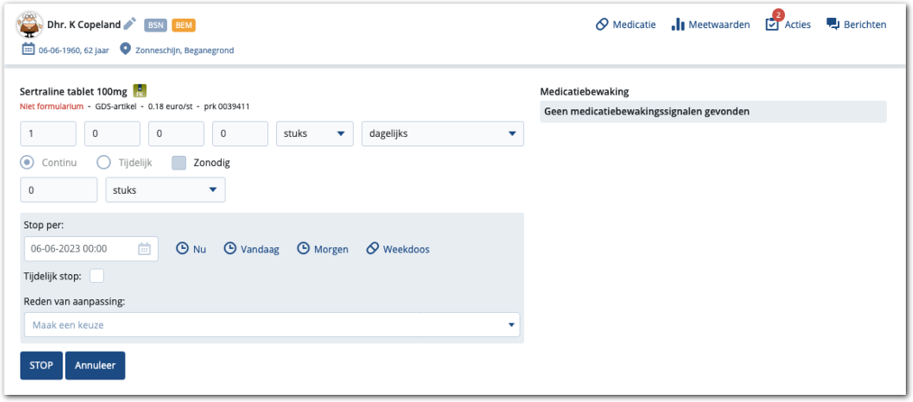 Hoe stuur ik met poli-klinisch voorschrijven een stoprecept?