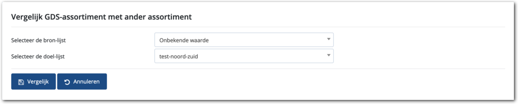 Dit kan met de functie 'Vergelijk GDS-assortiment met andere lijst'.