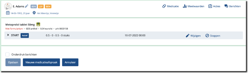 medicatieregel in de status van de cliënt. Onderstaande afbeelding een