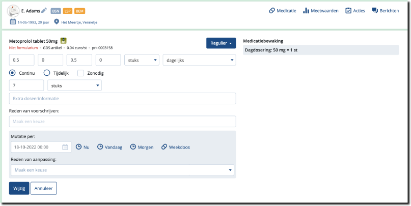 Dit kan met de link 'Wijzigen' in het overzicht medicatiebehadeling. Het