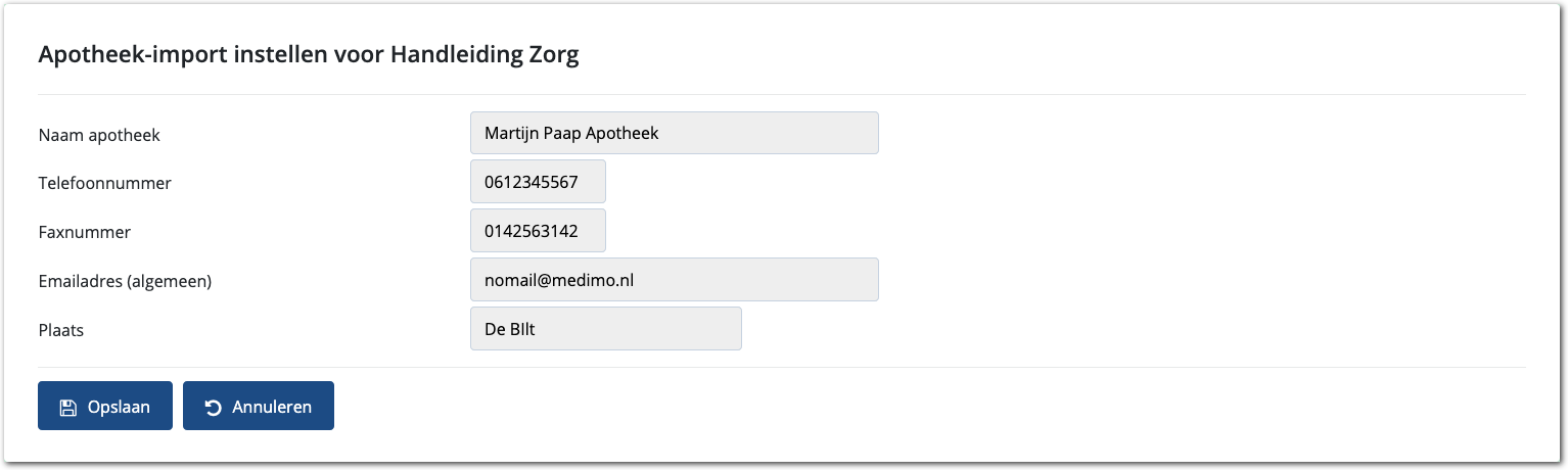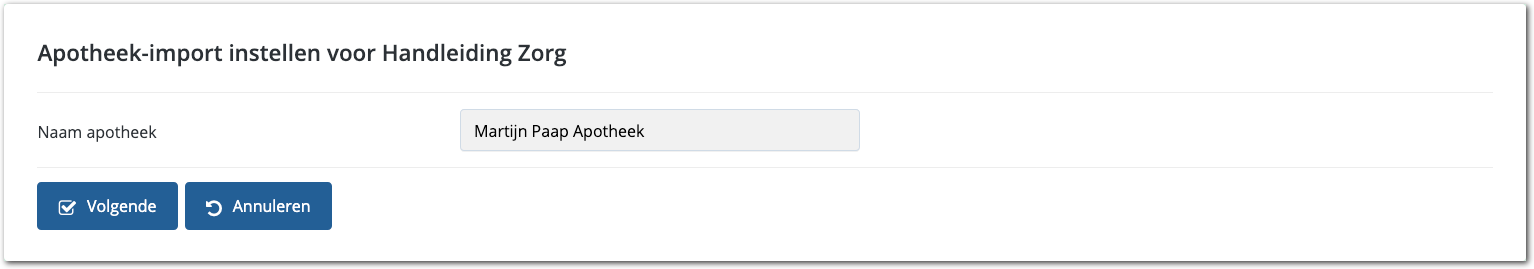 Nadat u de apotheek aan uw zakelijk verband hebt toegevoegd, kunt u eenvoudig de import configureren. Volg daarvoor de onderstaande instructies: