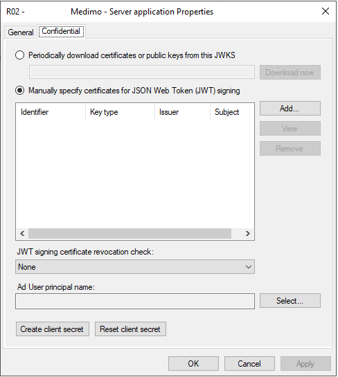 - Secure productie - https://secure.medimo.nl/sso/openidconnect/{klantnaam}_adfs