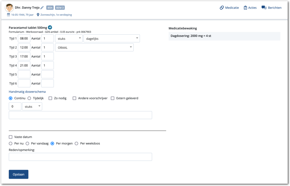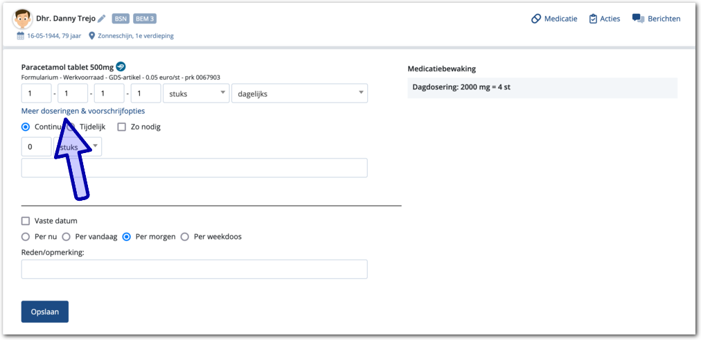 Als u per dag en toedienmoment een (afwijkende) dosering wilt opgeven,