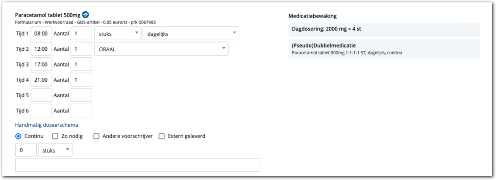 Handmatig doseerschema opgeven