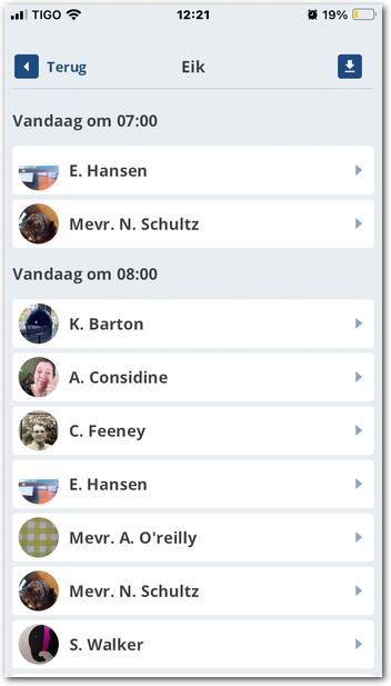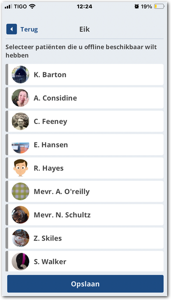 Hierna vraagt de app om de cliënten te selecteren waarvan u de medicatielijst wilt downloaden. Dit komt overeen met de onderstaande afbeelding.