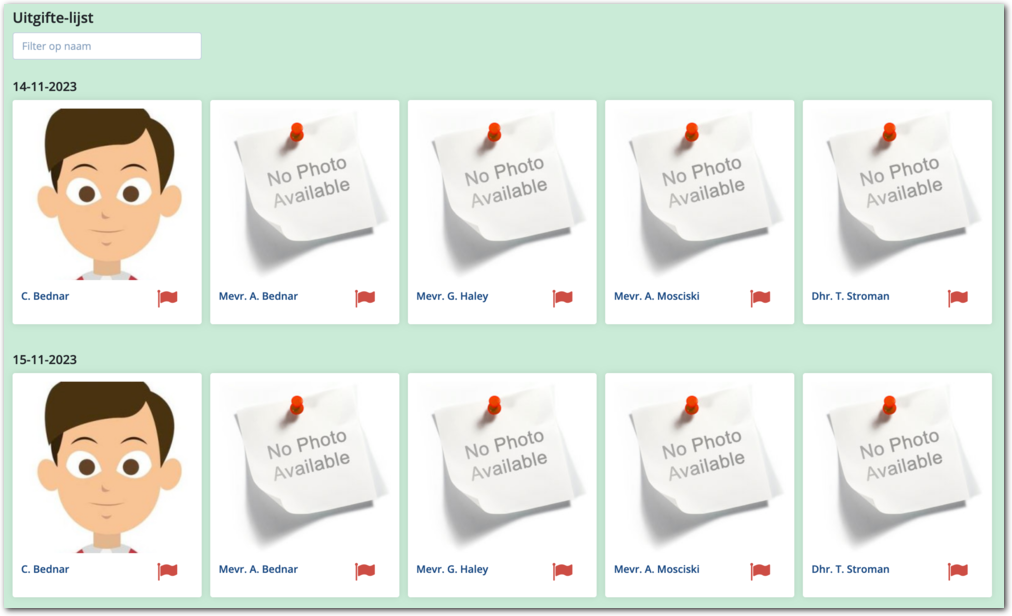 uitgifte-lijst is een lijst van cliënten waarvoor uitgiftes klaar