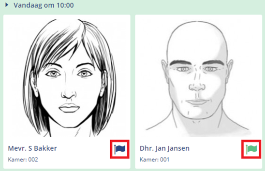 uur te laat is - groene vlag indien de cliënt medicatie heeft op de werklijst