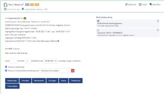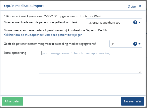 automatisch een popup geopend. Daarin wordt gevraagd of er nog medicatie
