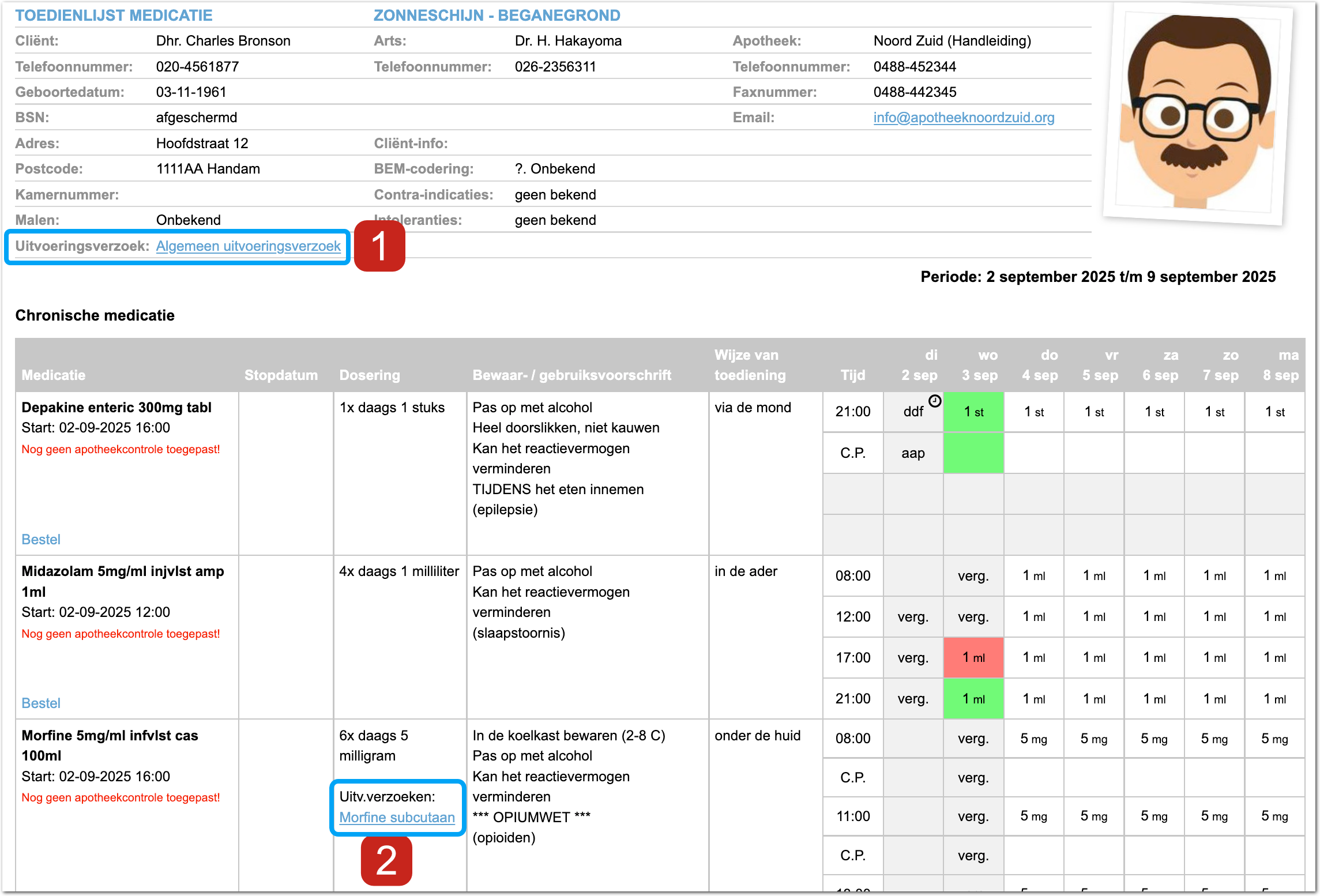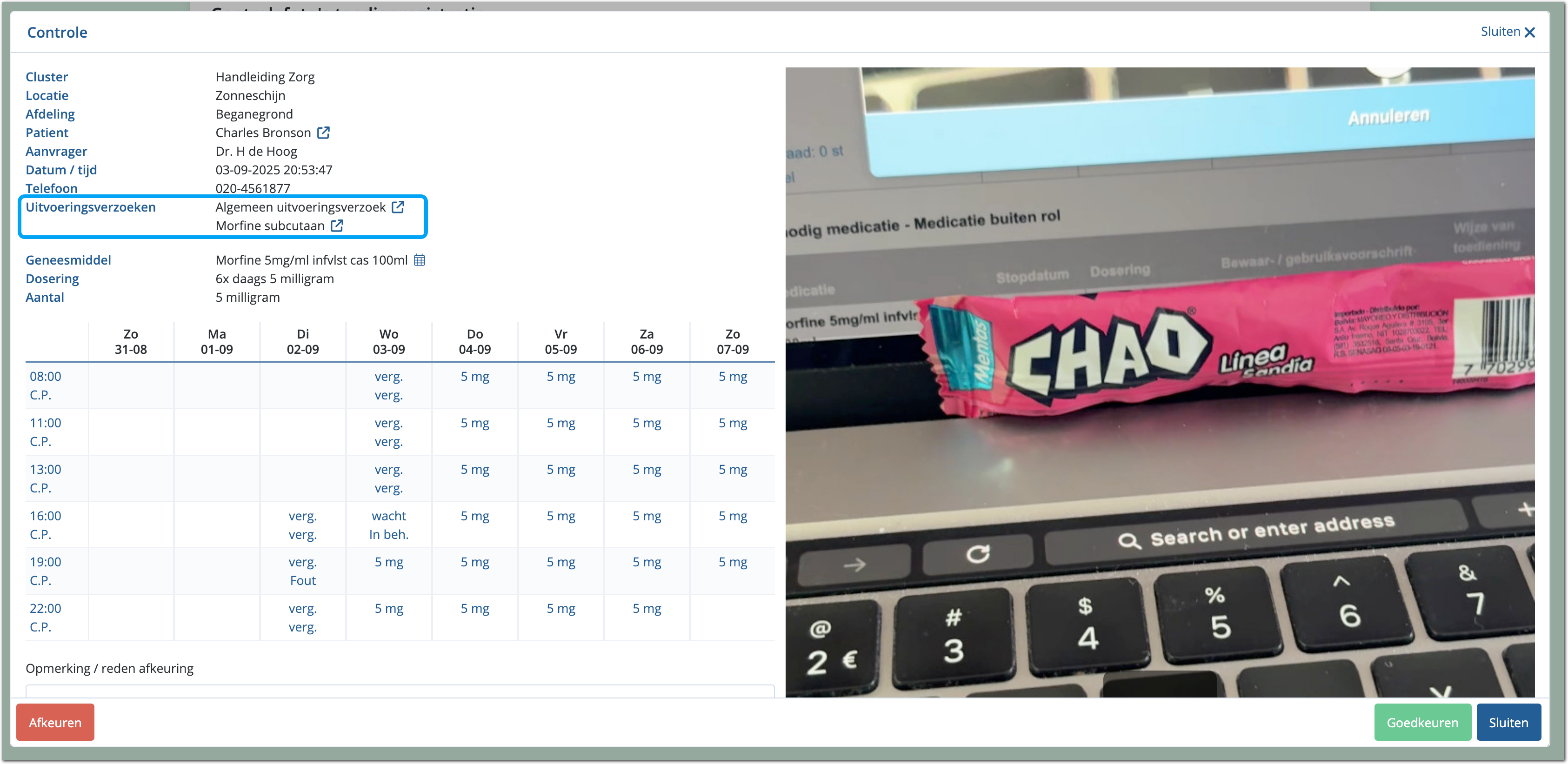- Uitvoeringsverzoek gekoppeld aan specifieke medicatie van cliënt.