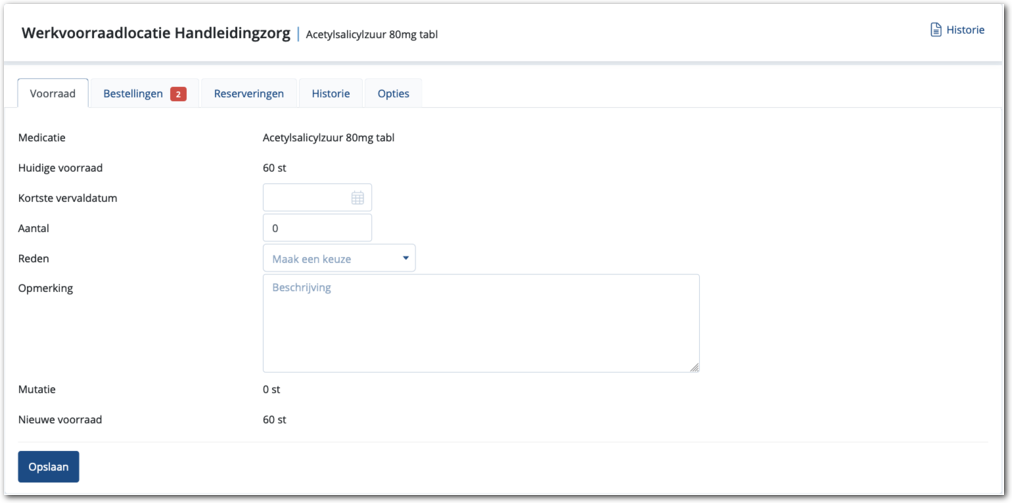 - Wijzig de voorraad van de cliënt incl. opiaten