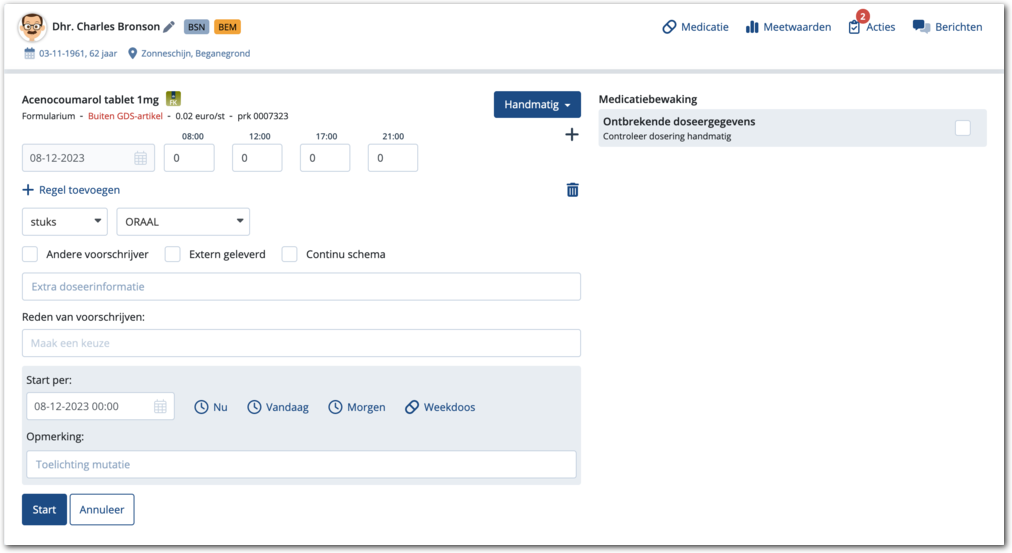 Nadat u een handmatige dosering hebt opgegeven, kunt u de medicatie op de gebruikelijke wijze starten.