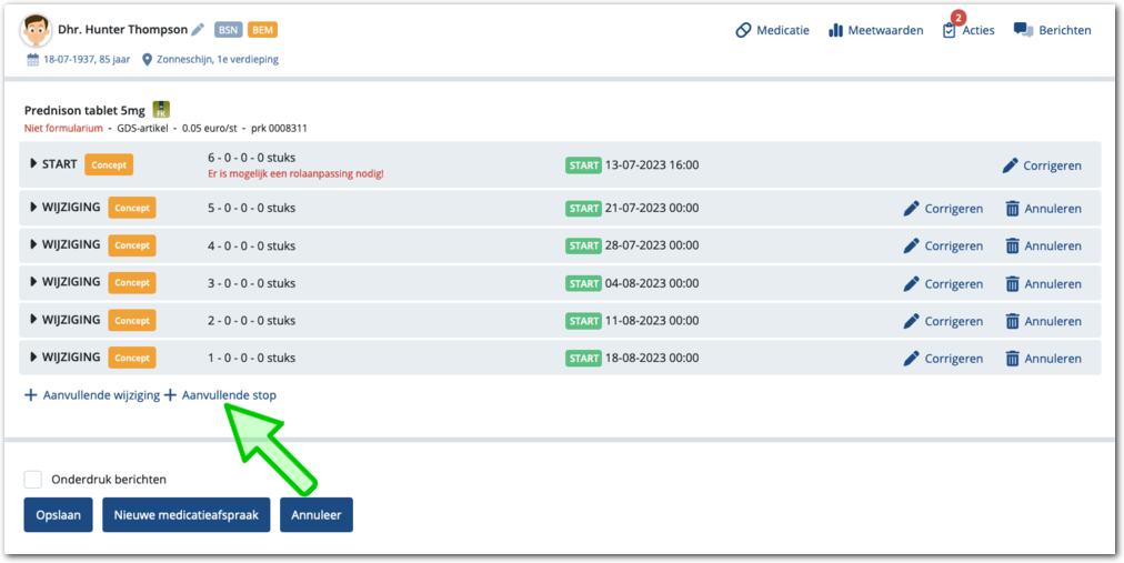voegt u een extra doseerregel toe. Medimo vult automatisch de volgende