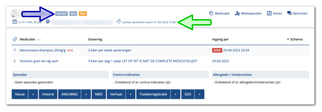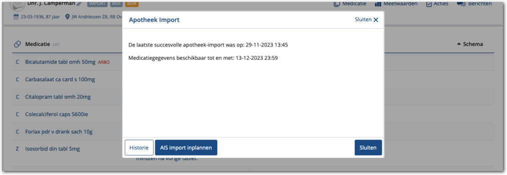 Wanneer Medimo de medicatie importeert uit een Apotheek informatiesysteem (AIS), dan toont