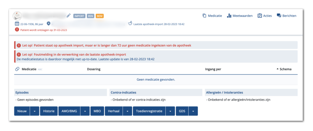 - Er is langer dan 72 uur geen medicatie geïmporteerd